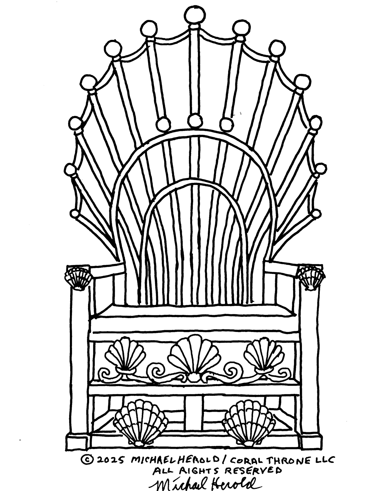 14. The Coral Throne™ - Original Line Drawing Hand-Rendered Copyright Image (© 2025 Michael Herold / Coral Throne LLC)